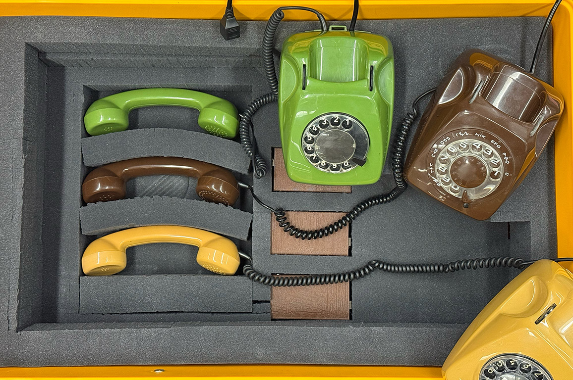 The rotary phones and Arduino interfaces for Ecophones 01 - 03 in their shipping case. Photo: Studio McMullen_Winkler.